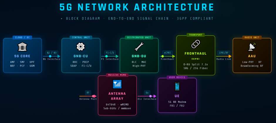 Massive MIMO architecture in 5G is not just “many antennas.” It is a distributed signal processing system that spans baseband, fronthaul, RF chains, and antenna arrays, all tightly synchronized.